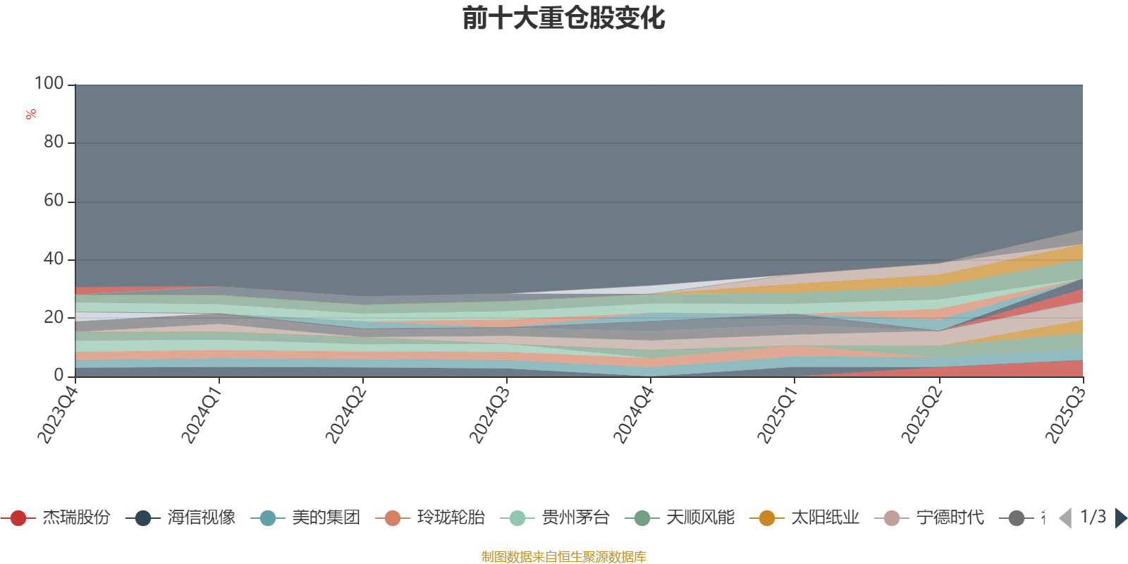 截至2025年三季度末,基金十大重仓股分别是海尔智家、宁德时代、杰瑞股份、天顺风能、亨通光电、中天科技、太阳纸业、药明康德、美的集团、天山铝业。