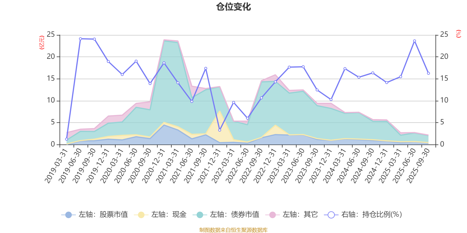 据定期报告数据统计,近三年平均股票仓位为15.92%,同类平均为72.35%。2019年上半年末基金达到24.13%的最高仓位,2019年一季度末最低,为1.24%。
