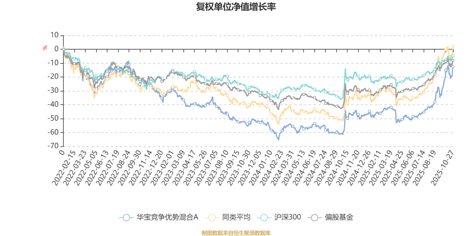 截至10月27日,华宝竞争优势混合A近三个月复权单位净值增长率为50.10%,位于同类可比基金58/229;近半年复权单位净值增长率为77.30%,位于同类可比基金59/229;近一年复权单位净值增长率为63.06%,位于同类可比基金79/213;近三年复权单位净值增长率为14.84%,位于同类可比基金138/158。