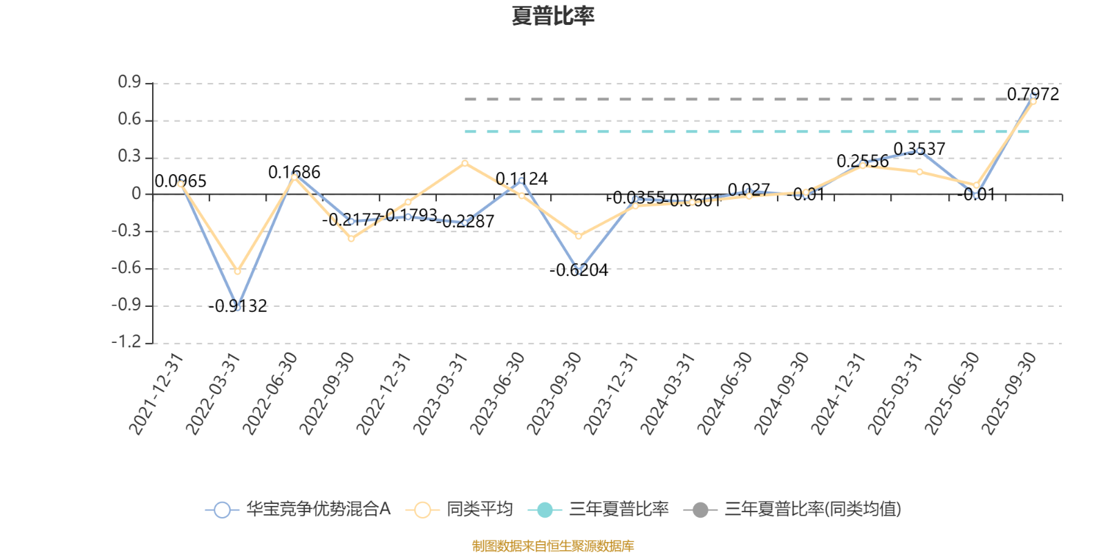 截至9月30日,基金近三年夏普比率为0.5083,位于同类可比基金133/159。