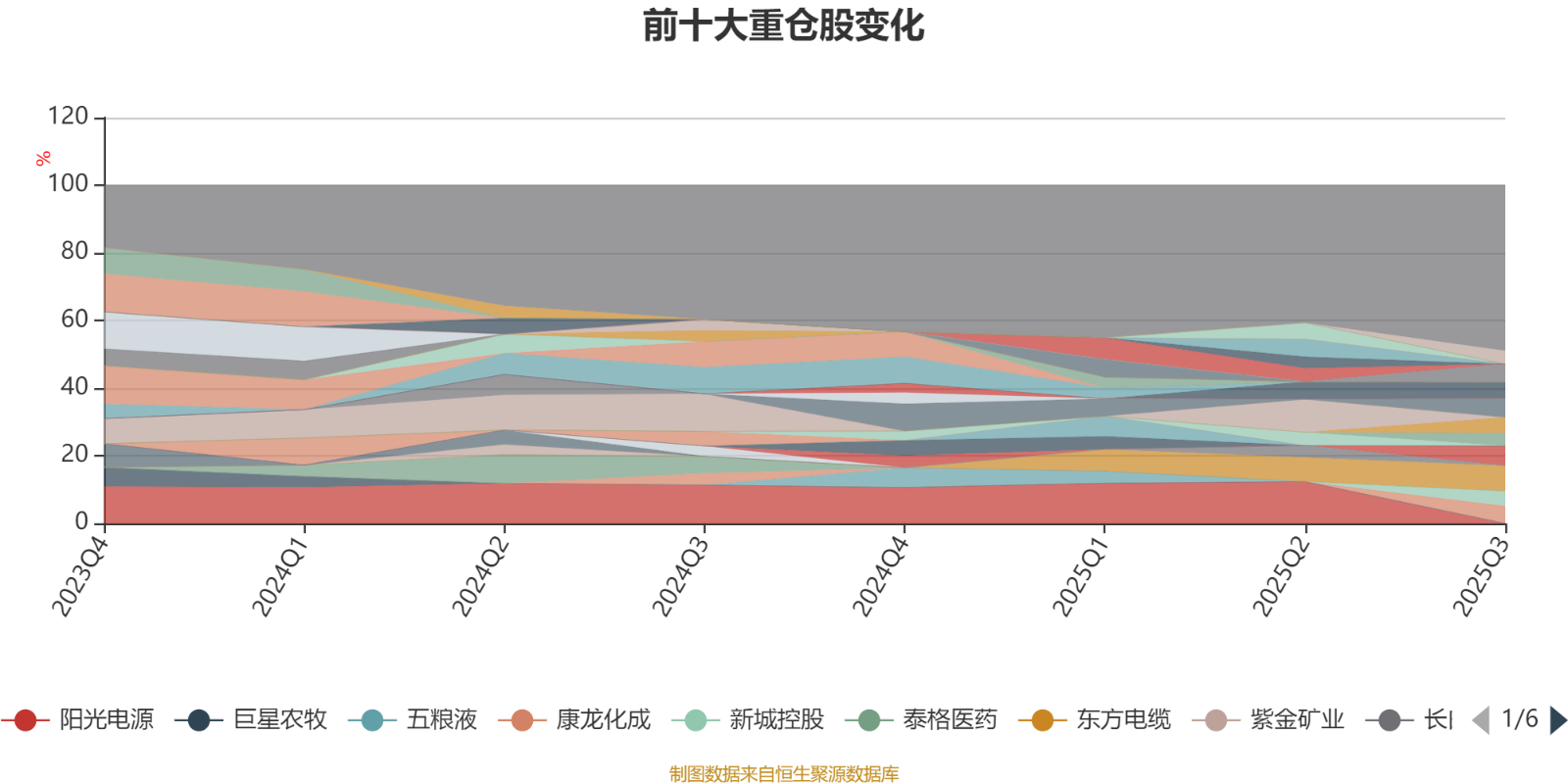 该基金持股集中度较高。截至2025年三季度末,基金十大重仓股分别是东方电缆、迈瑞医疗、药明康德、牧原股份、康龙化成、燕京啤酒、海力风电、新城控股、华菱钢铁、阿特斯。