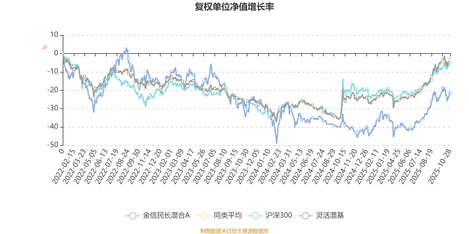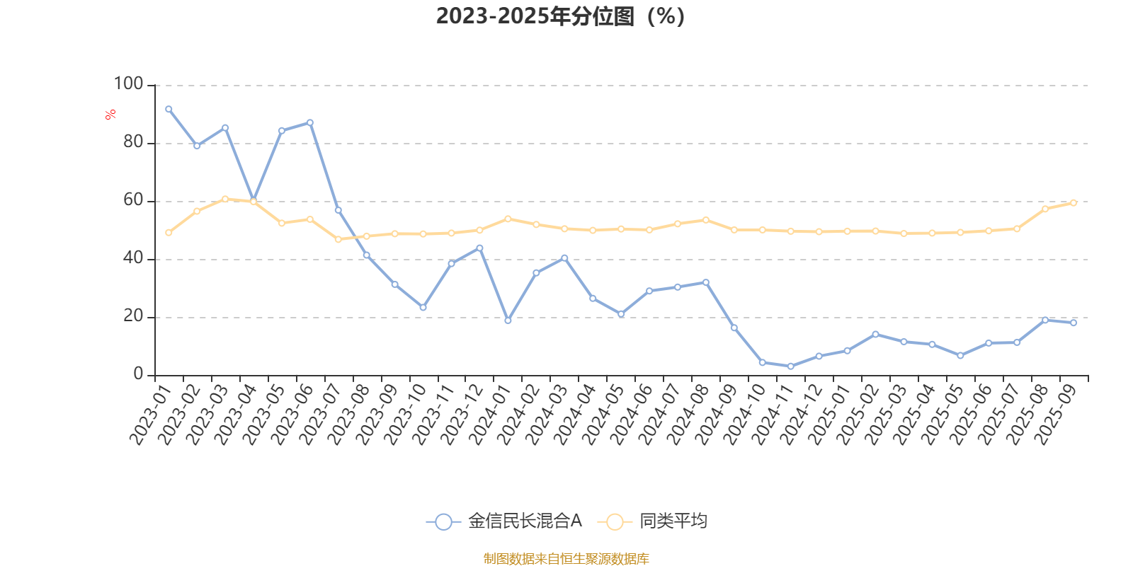 截至10月28日,金信民长混合A近三个月复权单位净值增长率为17.43%,位于同类可比基金425/1287;近半年复权单位净值增长率为31.85%,位于同类可比基金436/1287;近一年复权单位净值增长率为31.69%,位于同类可比基金380/1287;近三年复权单位净值增长率为-5.69%,位于同类可比基金1105/1286。