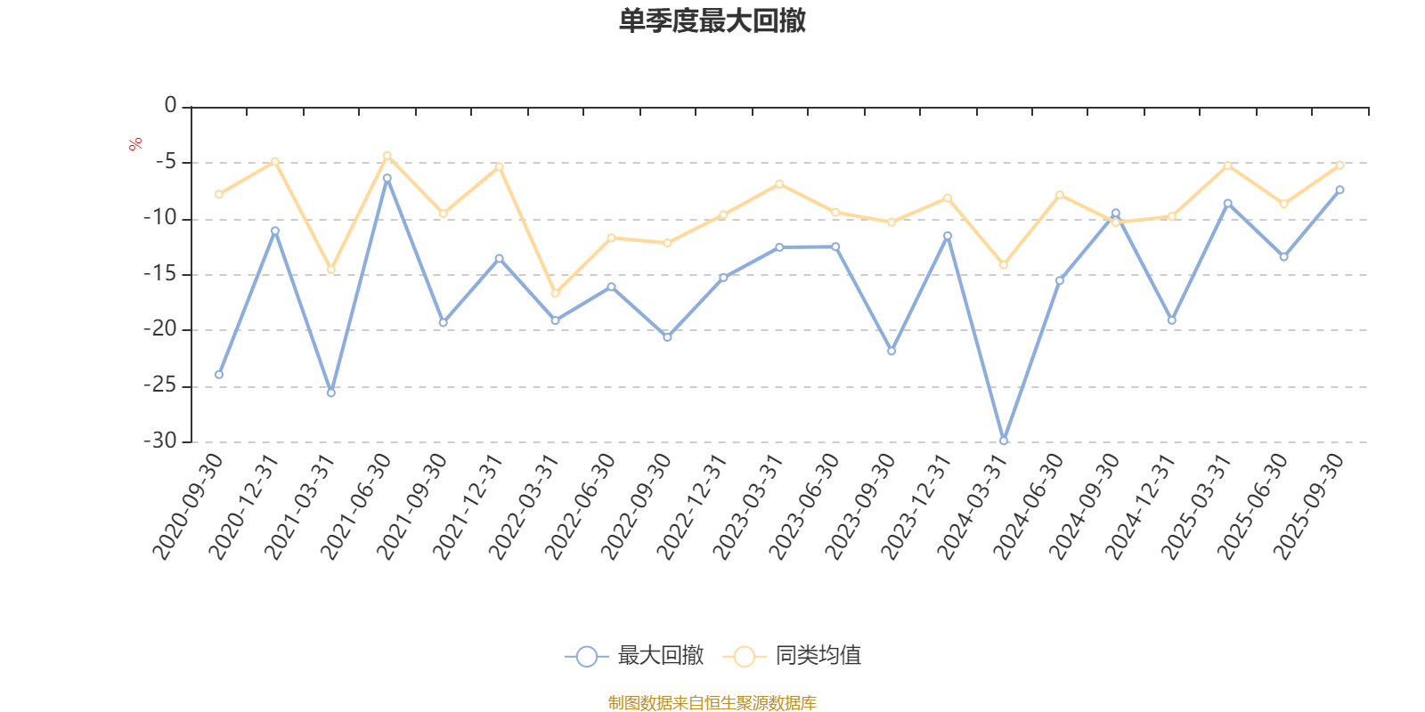 截至10月28日,基金近三年最大回撤为46.15%,同类可比基金排名1094/1274。单季度最大回撤出现在2024年一季度,为29.9%。
