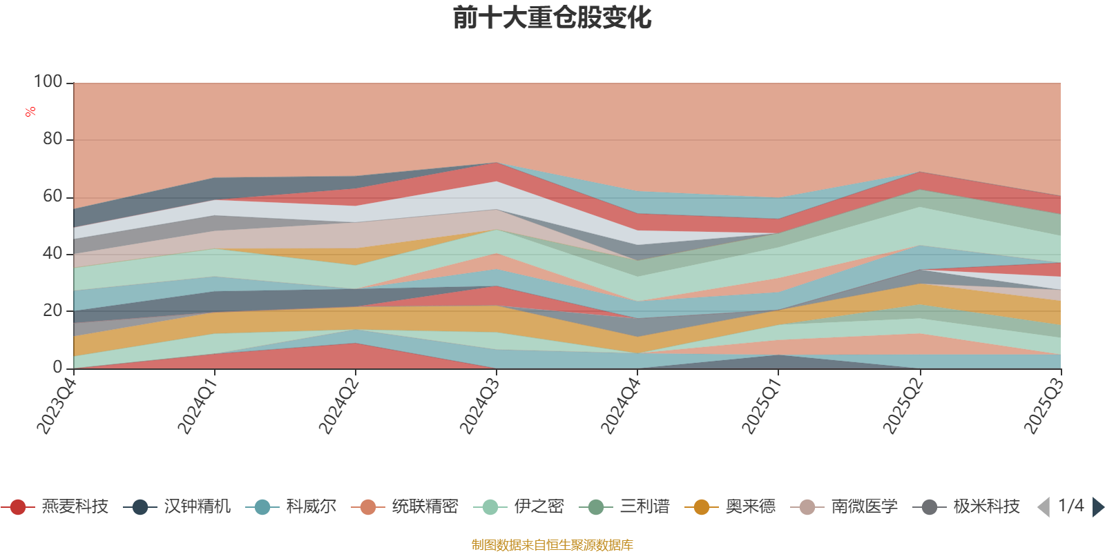 该基金持股集中度较高。截至2025年三季度末,基金十大重仓股分别是芯碁微装、奥来德、悦安新材、普源精电、伊之密、科威尔、飞凯材料、开立医疗、三利谱、南微医学。