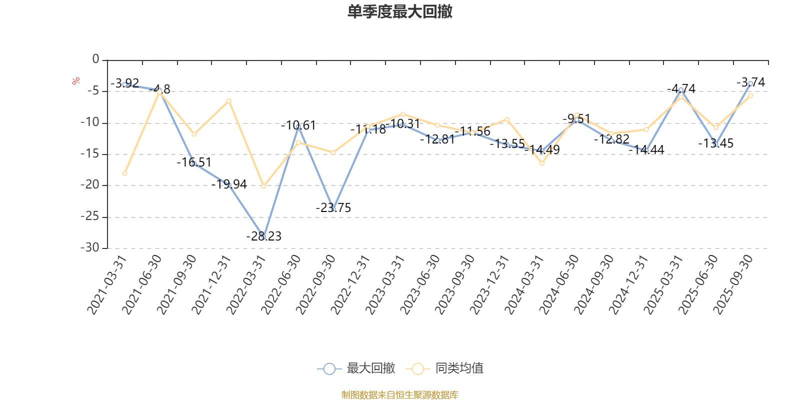 截至10月29日,基金近三年最大回撤为33.8%,同类可比基金排名215/513。单季度最大回撤出现在2022年一季度,为28.23%。