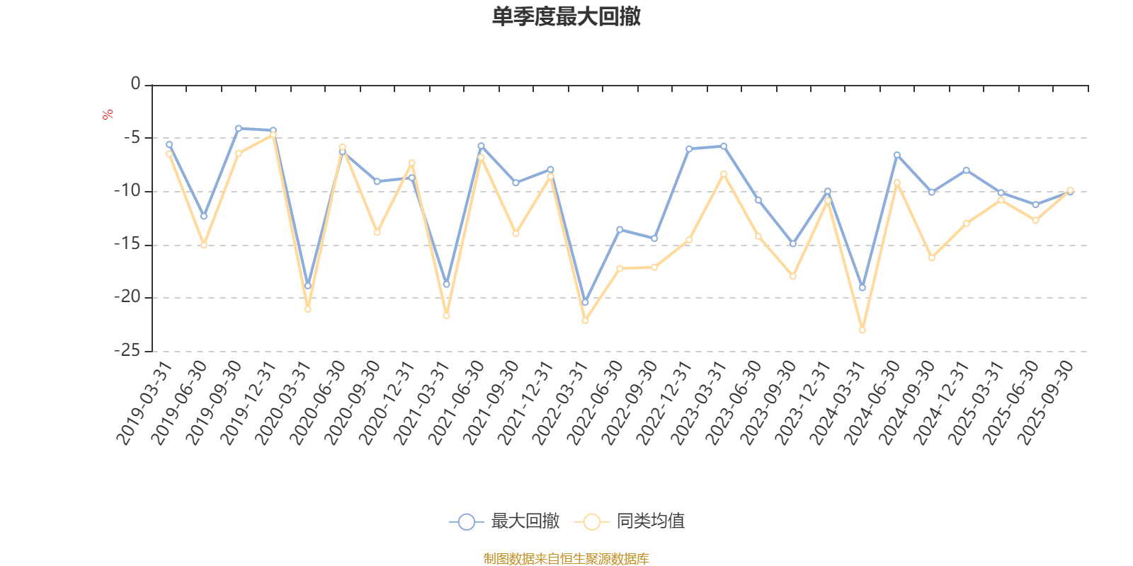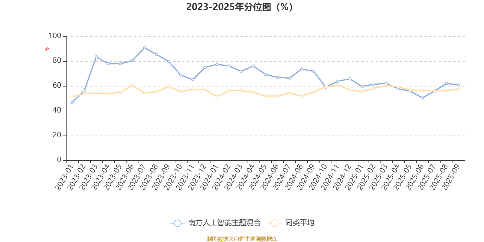通过所选区间该基金净值增长率分位图,可以观察该基金与同类基金业绩比较情况。图为坐标原点到区间内某时点的净值增长率在同类基金中的分位数。