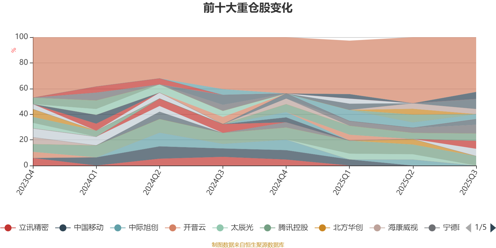 截至2025年三季度末,基金十大重仓股分别是新易盛、腾讯控股、中芯国际、寒武纪、海光信息、金山办公、兆易创新、歌尔股份、快手-W、阿里巴巴-W。