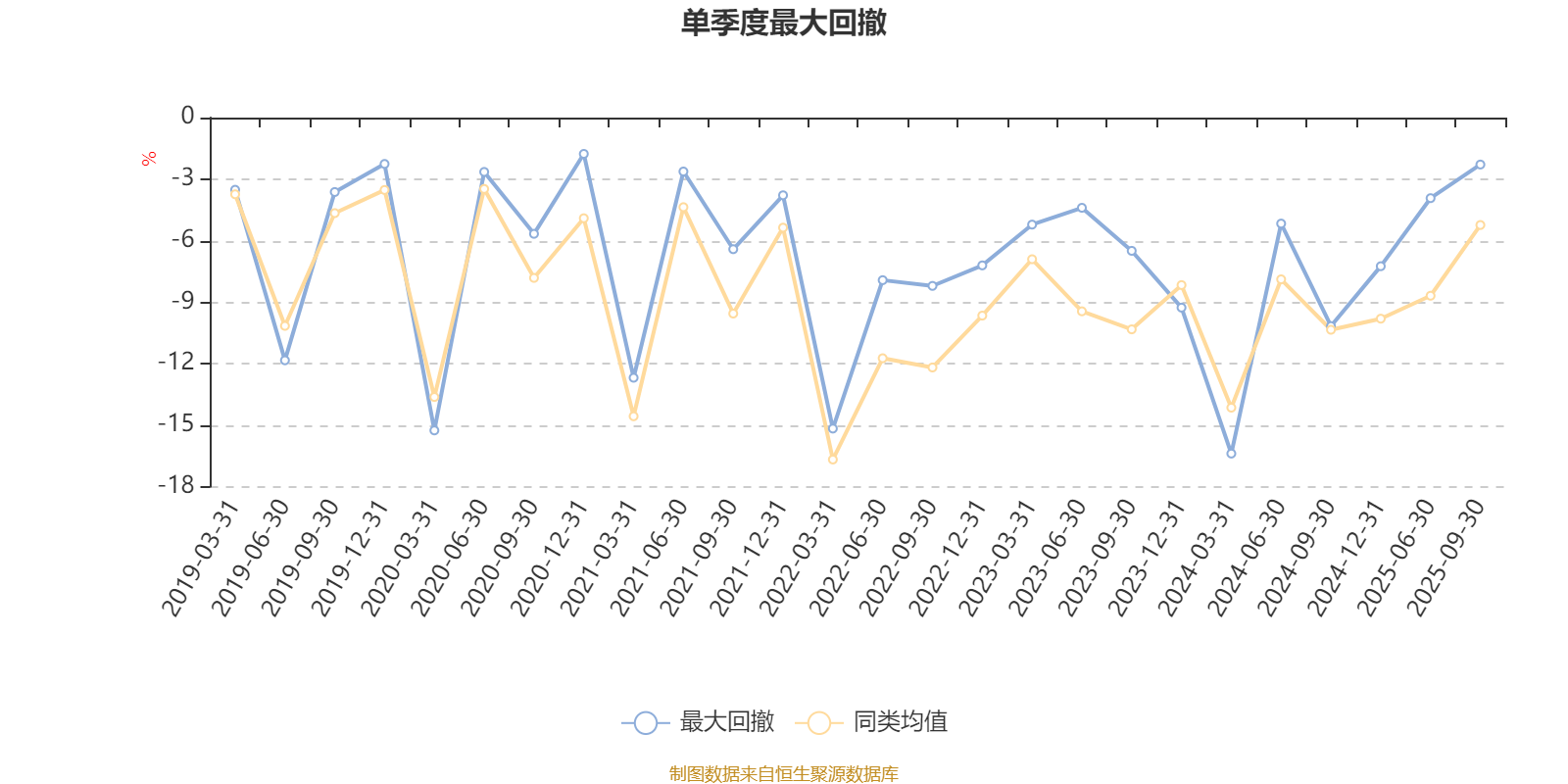 通过所选区间该基金净值增长率分位图,可以观察该基金与同类基金业绩比较情况。图为坐标原点到区间内某时点的净值增长率在同类基金中的分位数。