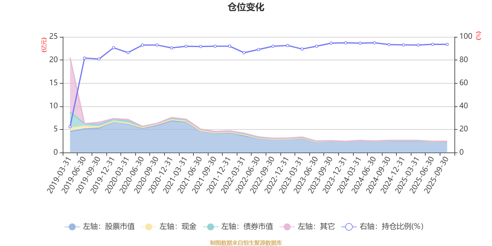 据定期报告数据统计,近三年平均股票仓位为93.31%,同类平均为72.35%。2023年末基金达到94.9%的最高仓位,2019年一季度末最低,为22.37%。