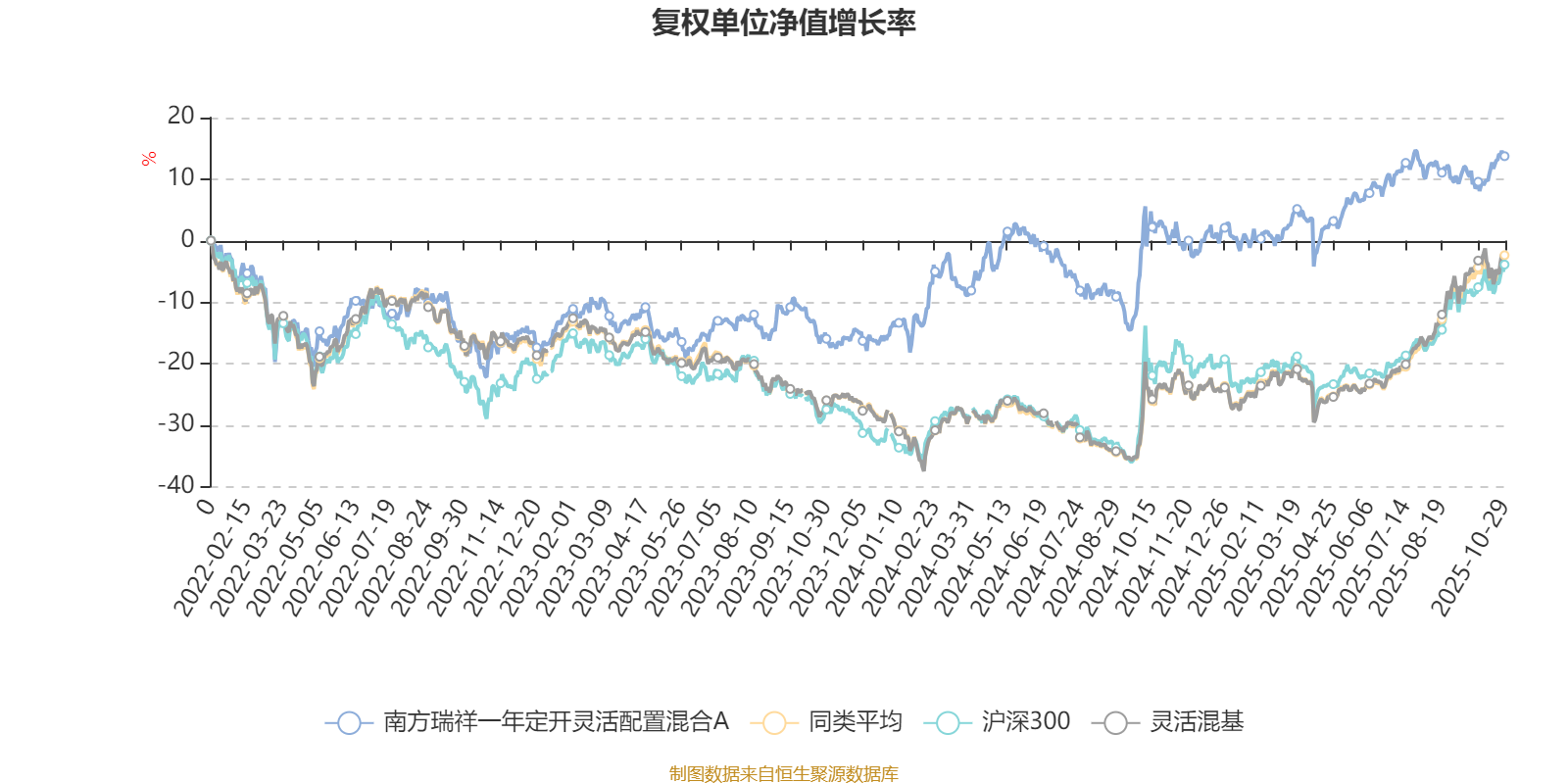 截至10月29日,南方瑞祥一年定开灵活配置混合A近三个月复权单位净值增长率为1.46%,位于同类可比基金1139/1287;近半年复权单位净值增长率为10.33%,位于同类可比基金1027/1287;近一年复权单位净值增长率为12.28%,位于同类可比基金914/1287;近三年复权单位净值增长率为45.84%,位于同类可比基金197/1286。