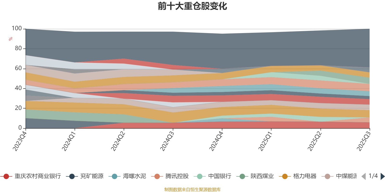 该基金持股集中度较高,近2年前十大重仓股集中度长期超过60%。截至2025年三季度末,基金重仓股分别是建设银行、格力电器、海尔智家、重庆农村商业银行、招商银行、中煤能源、景津装备、腾讯控股、农业银行、中国建筑、渝农商行。