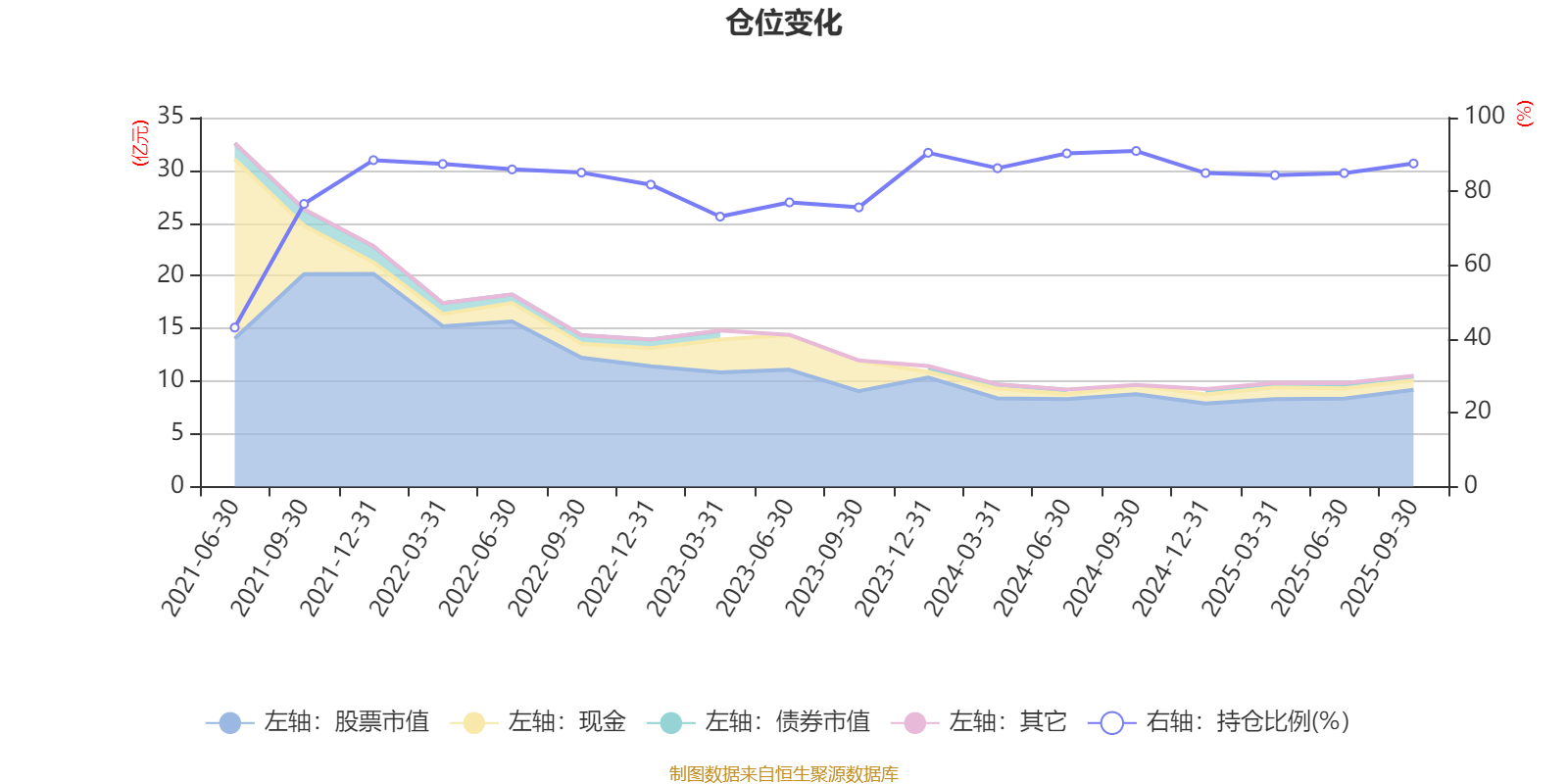 据定期报告数据统计,近三年平均股票仓位为83.97%,同类平均为85.99%。2024年三季度末基金达到90.95%的最高仓位,2021年上半年末最低,为43.1%。