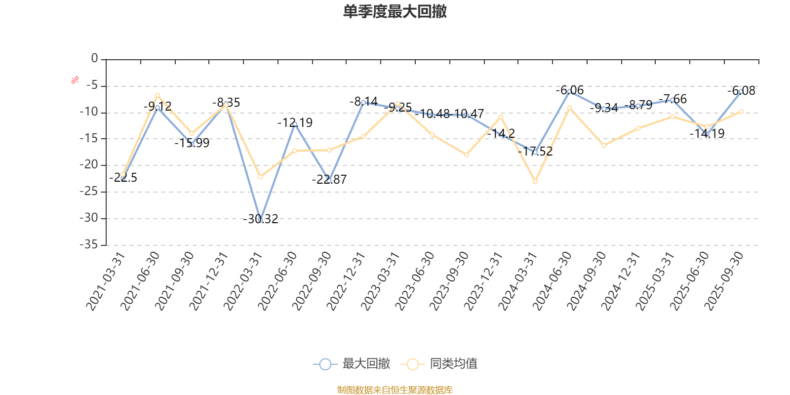 截至10月28日,基金近三年最大回撤为34.82%,同类可比基金排名24/159。单季度最大回撤出现在2022年一季度,为30.32%。