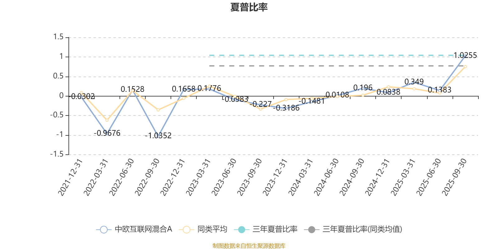 截至9月30日,基金近三年夏普比率为1.0402,位于同类可比基金21/159。