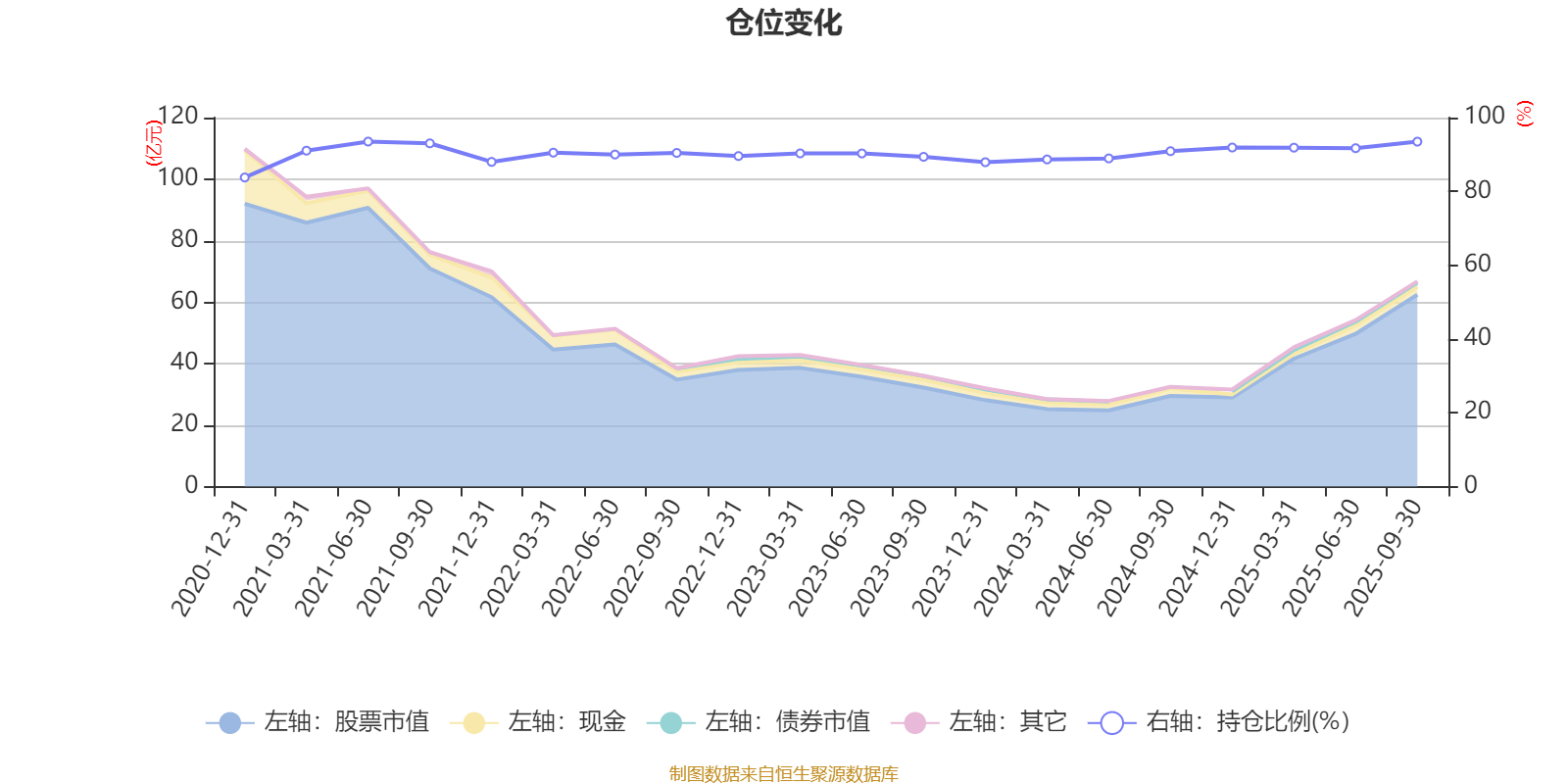 据定期报告数据统计,近三年平均股票仓位为90.41%,同类平均为86.77%。2021年上半年末基金达到93.5%的最高仓位,2020年末最低,为83.77%。