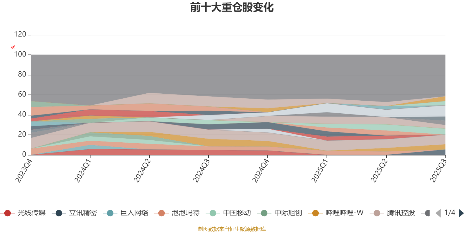 截至2025年三季度末,基金十大重仓股分别是阿里巴巴-W、腾讯控股、吉比特、立讯精密、哔哩哔哩-W、兆易创新、中芯国际、达梦数据、科沃斯、小米集团-W。