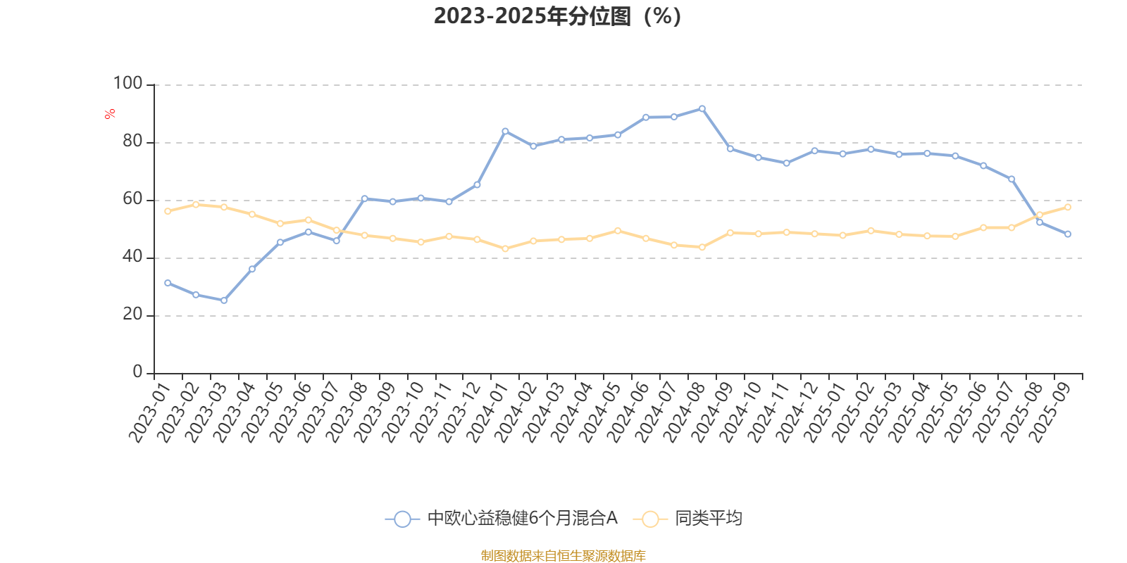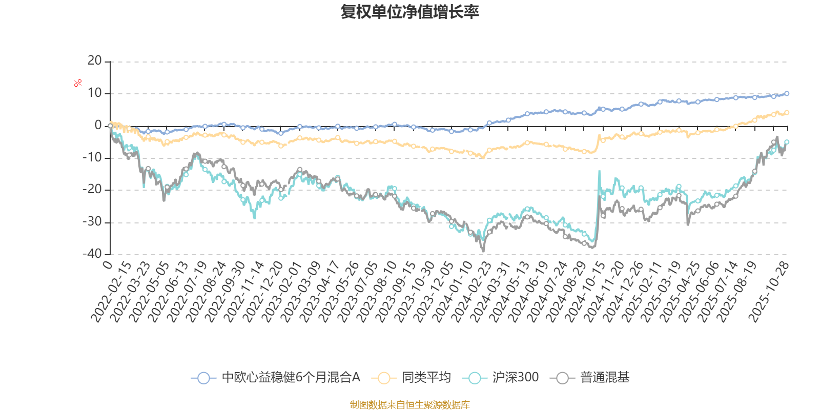 截至10月28日,中欧心益稳健6个月混合A近三个月复权单位净值增长率为0.96%,位于同类可比基金502/629;近半年复权单位净值增长率为2.38%,位于同类可比基金551/629;近一年复权单位净值增长率为4.74%,位于同类可比基金472/623;近三年复权单位净值增长率为11.15%,位于同类可比基金303/557。
