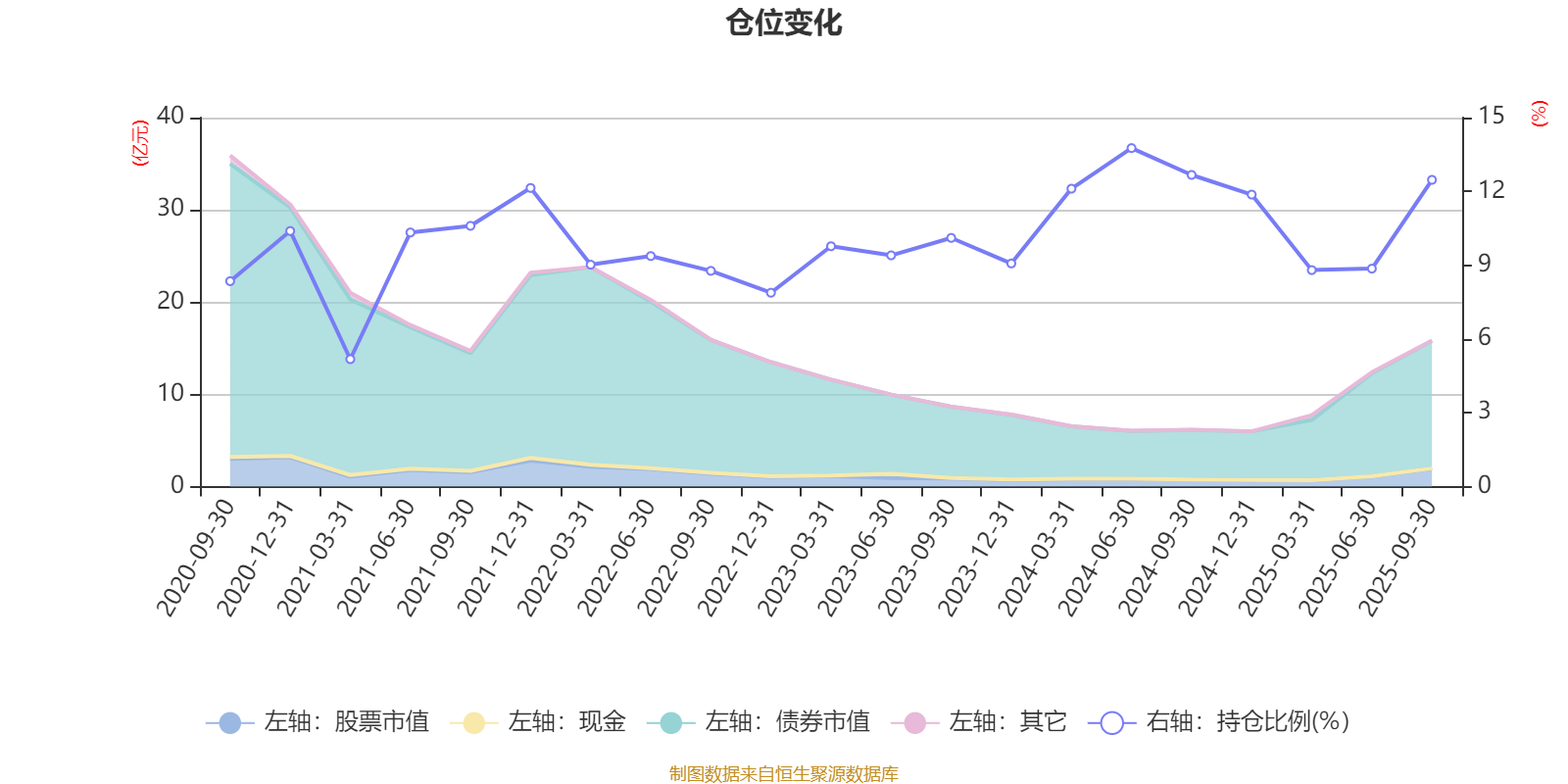 基金管理人在三季报中表示,组合管理角度上,组合在兼顾高股息资产的防御价值的基础上,增加了部分科技成长股的进攻弹性。配置思路上,组合将继续坚持大盘风格为底仓,灵活增加科技成长与顺周期板块配置,聚焦政策支持明确、有长期成长逻辑的领域。债券层面,我们更倾向于认为前半年债券更多呈现的是牛尾行情,CPI 低位运行是对牛市行情的最根本支撑。而伴随反内卷带动的商品和权益市场上涨,改变了这一逻辑的胜率。随市场震荡走高,分歧也逐渐增加,需更注重把握短期交易机会。