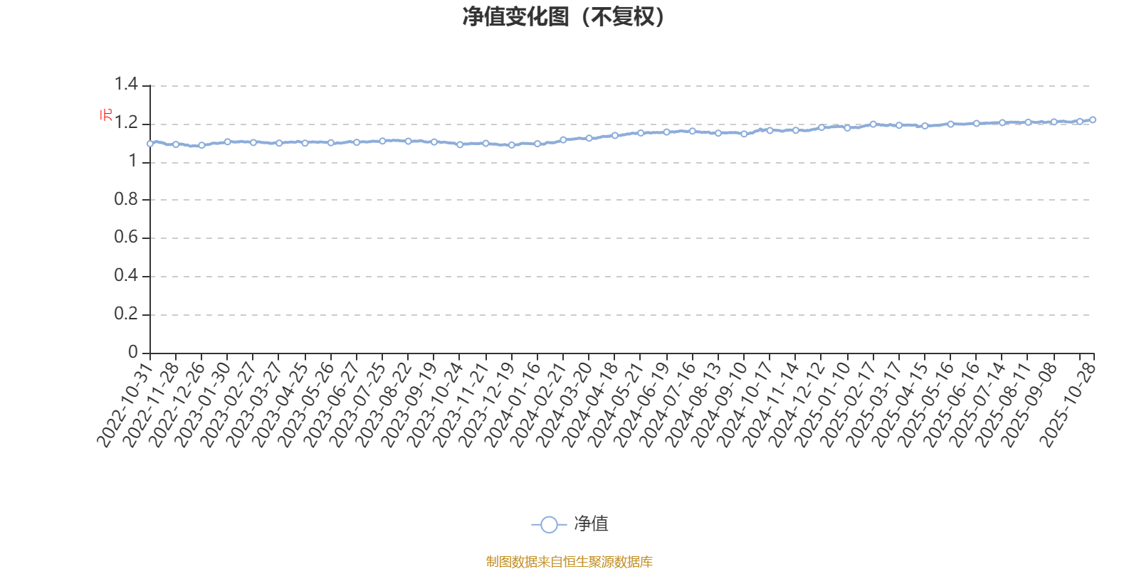 该基金属于偏债混合型基金。截至10月28日,单位净值为1.22元。基金经理是黄华,目前管理的8只基金近一年均为正收益。其中,截至10月28日,中欧生益稳健一年混合A近一年复权单位净值增长率最高,达9.46%;中欧琪和灵活配置混合A最低,为4.63%。