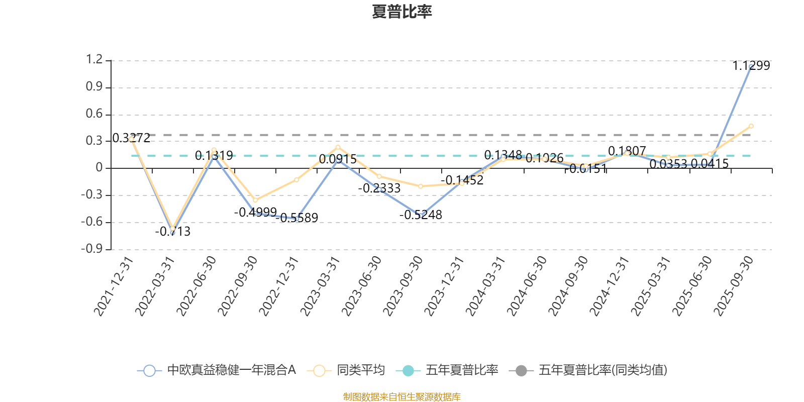 截至9月30日,基金近三年夏普比率为0.2862,位于同类可比基金448/553。