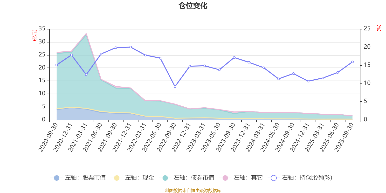 据定期报告数据统计,近三年平均股票仓位为13.81%,同类平均为19.14%。2021年末基金达到20.01%的最高仓位,2022年三季度末最低,为9.14%。