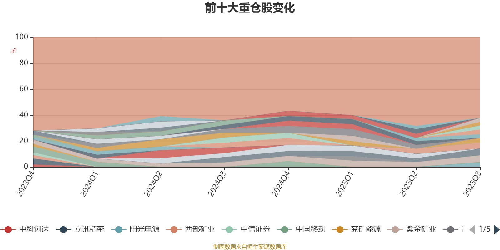 截至2025年三季度末,基金十大重仓股分别是紫金矿业、宁德时代、新华保险、阳光电源、金风科技、徐工机械、牧原股份、杭州银行、江淮汽车、齐鲁银行。