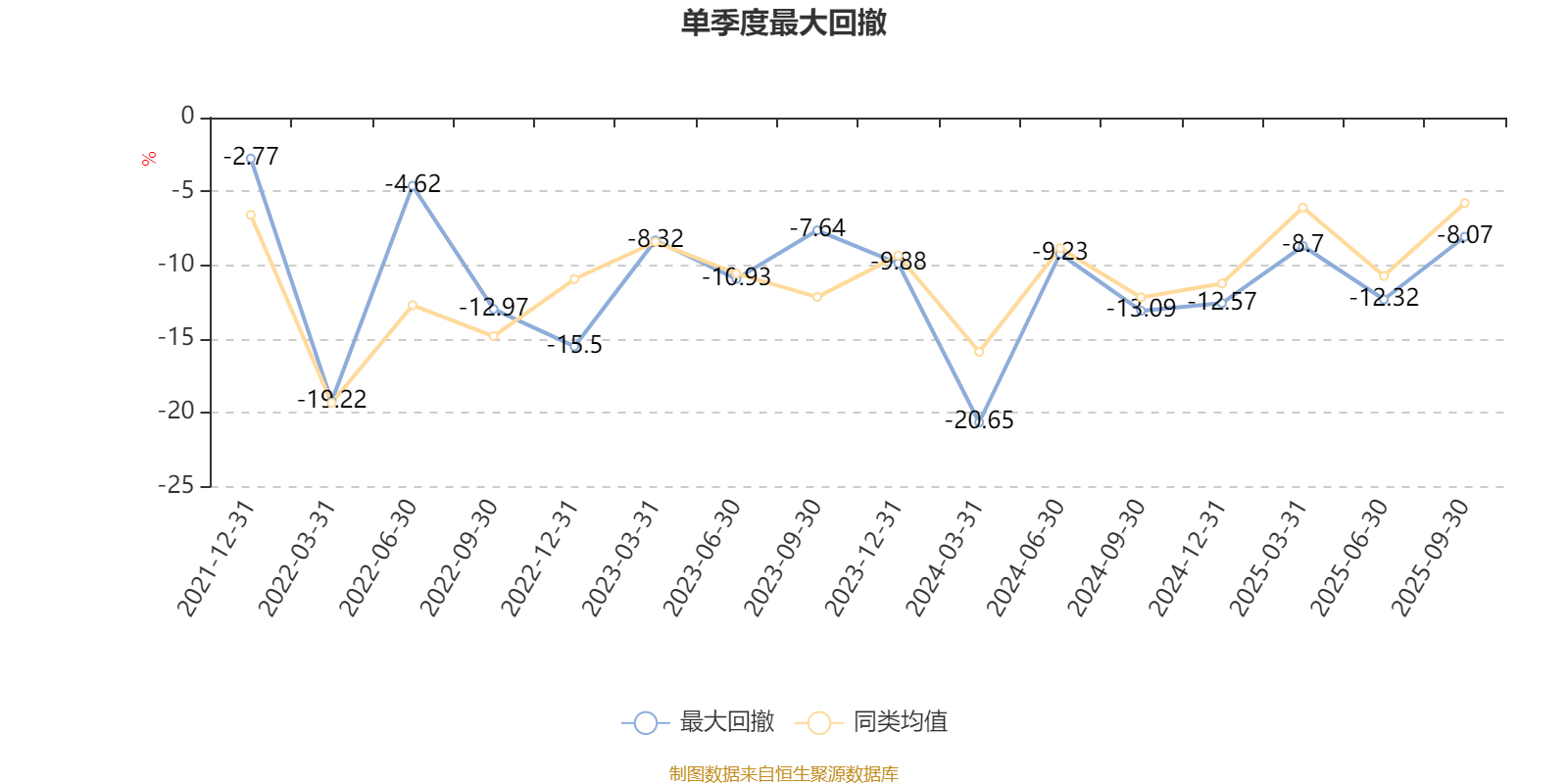 截至10月28日,基金近三年最大回撤为35.03%,同类可比基金排名142/363。单季度最大回撤出现在2024年一季度,为20.65%。