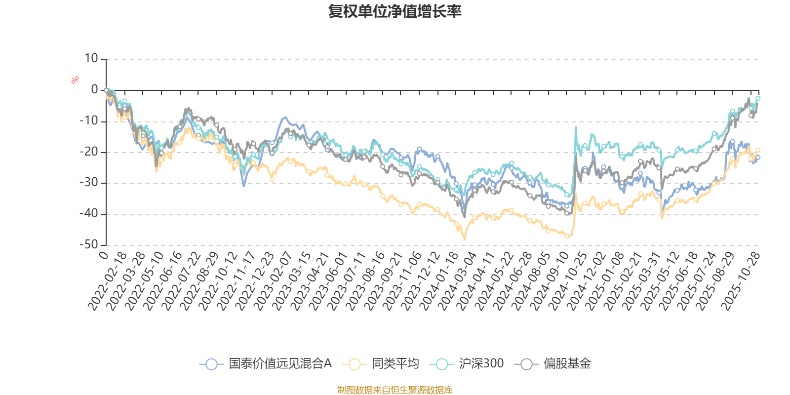 截至10月28日,国泰价值远见混合A近三个月复权单位净值增长率为10.15%,位于同类可比基金429/689;近半年复权单位净值增长率为18.76%,位于同类可比基金503/688;近一年复权单位净值增长率为3.84%,位于同类可比基金613/653;近三年复权单位净值增长率为13.81%,位于同类可比基金191/364。