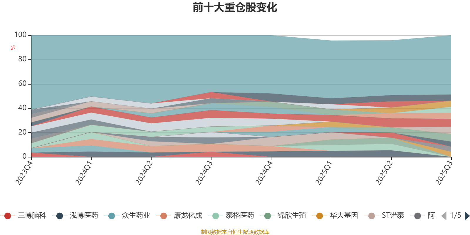 截至2025年三季度末,基金十大重仓股分别是微创医疗、晶泰控股、固生堂、海吉亚医疗、润达医疗、微创机器人-B、博济医药、阿里健康、美年健康、华大基因。