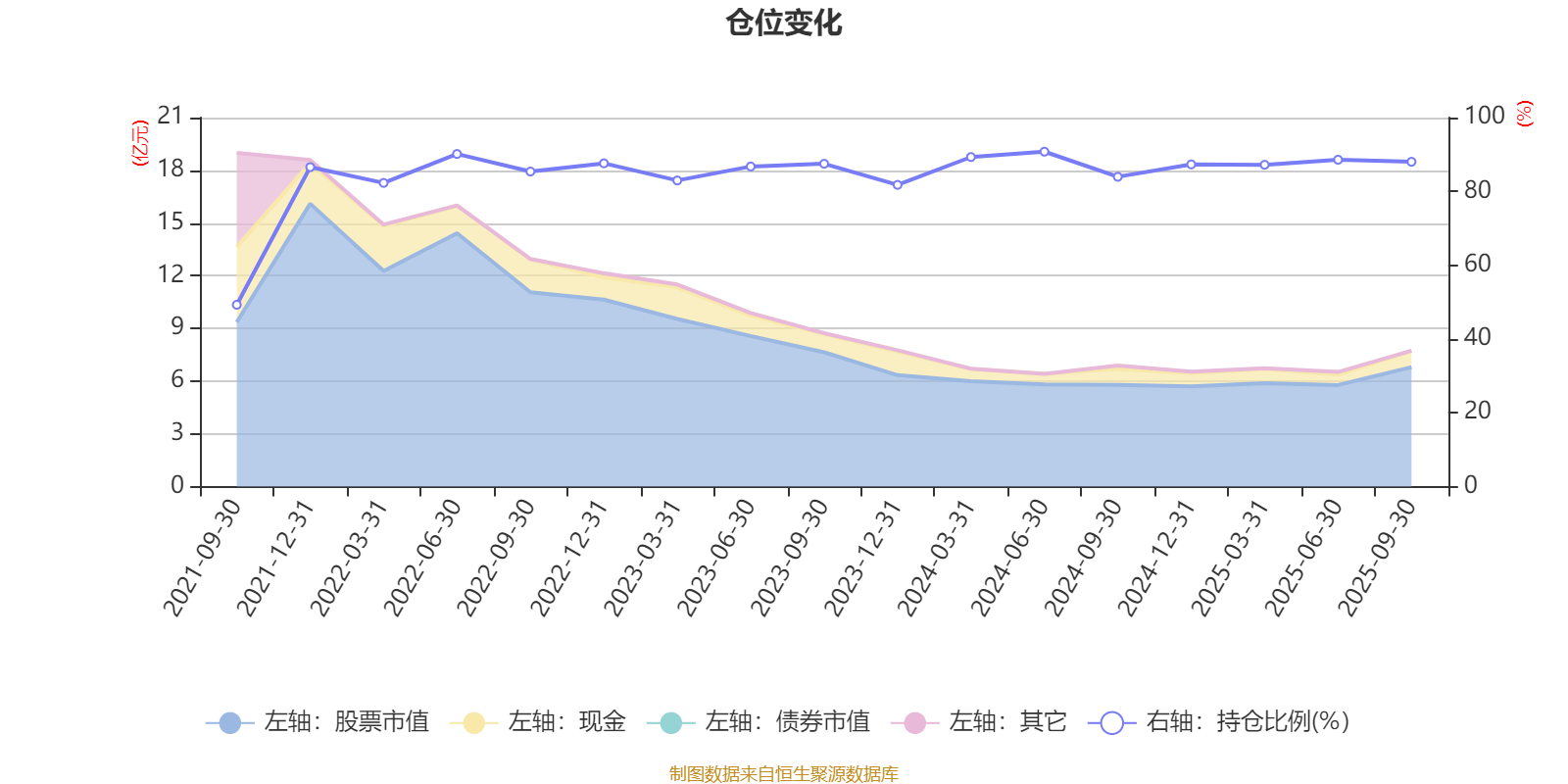 据定期报告数据统计,近三年平均股票仓位为86.81%,同类平均为85.99%。2024年上半年末基金达到90.77%的最高仓位,2021年三季度末最低,为49.27%。