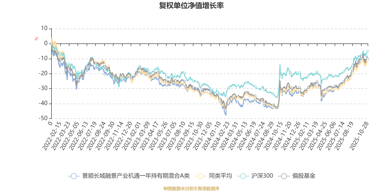 截至10月28日,景顺长城融景产业机遇一年持有期混合A类近三个月复权单位净值增长率为15.81%,位于同类可比基金114/265;近半年复权单位净值增长率为34.53%,位于同类可比基金95/265;近一年复权单位净值增长率为30.73%,位于同类可比基金107/265;近三年复权单位净值增长率为23.35%,位于同类可比基金119/253。