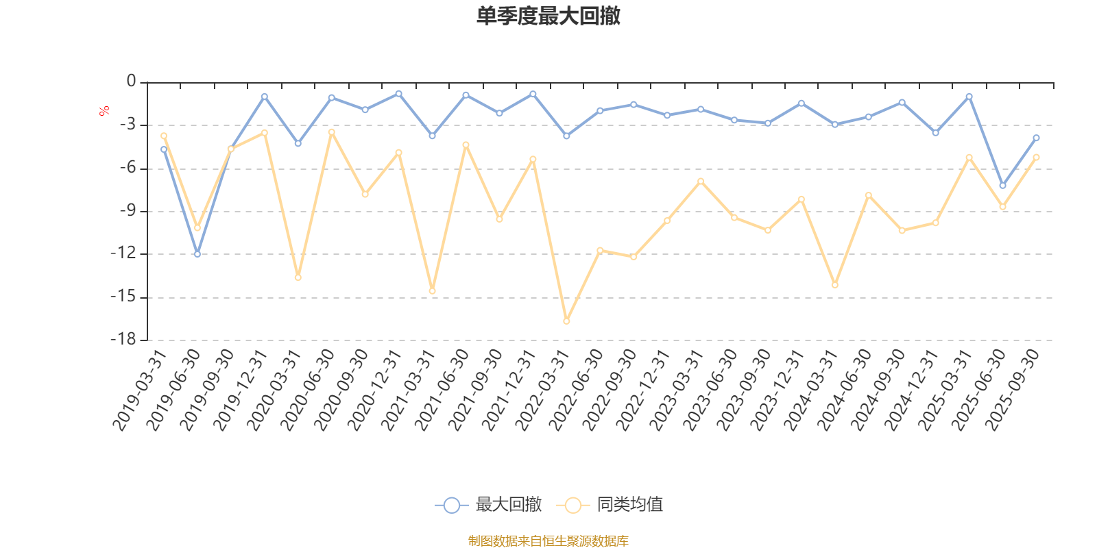 截至10月28日,基金近三年最大回撤为9.2%,同类可比基金排名141/1274。单季度最大回撤出现在2019年二季度,为12%。