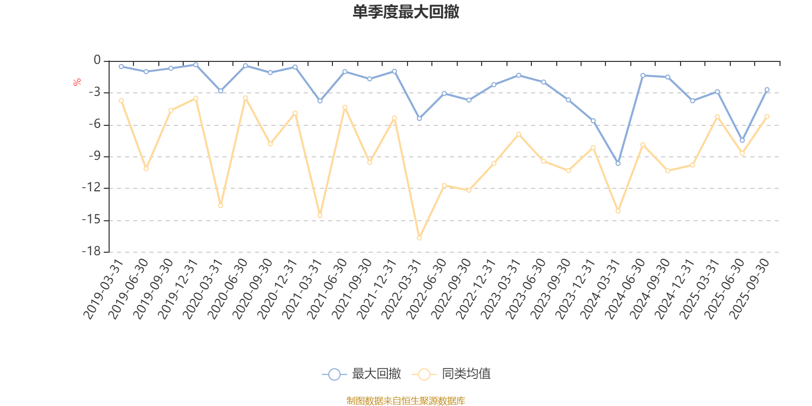 截至10月28日,基金近三年最大回撤为14.99%,同类可比基金排名196/1274。单季度最大回撤出现在2024年一季度,为9.66%。