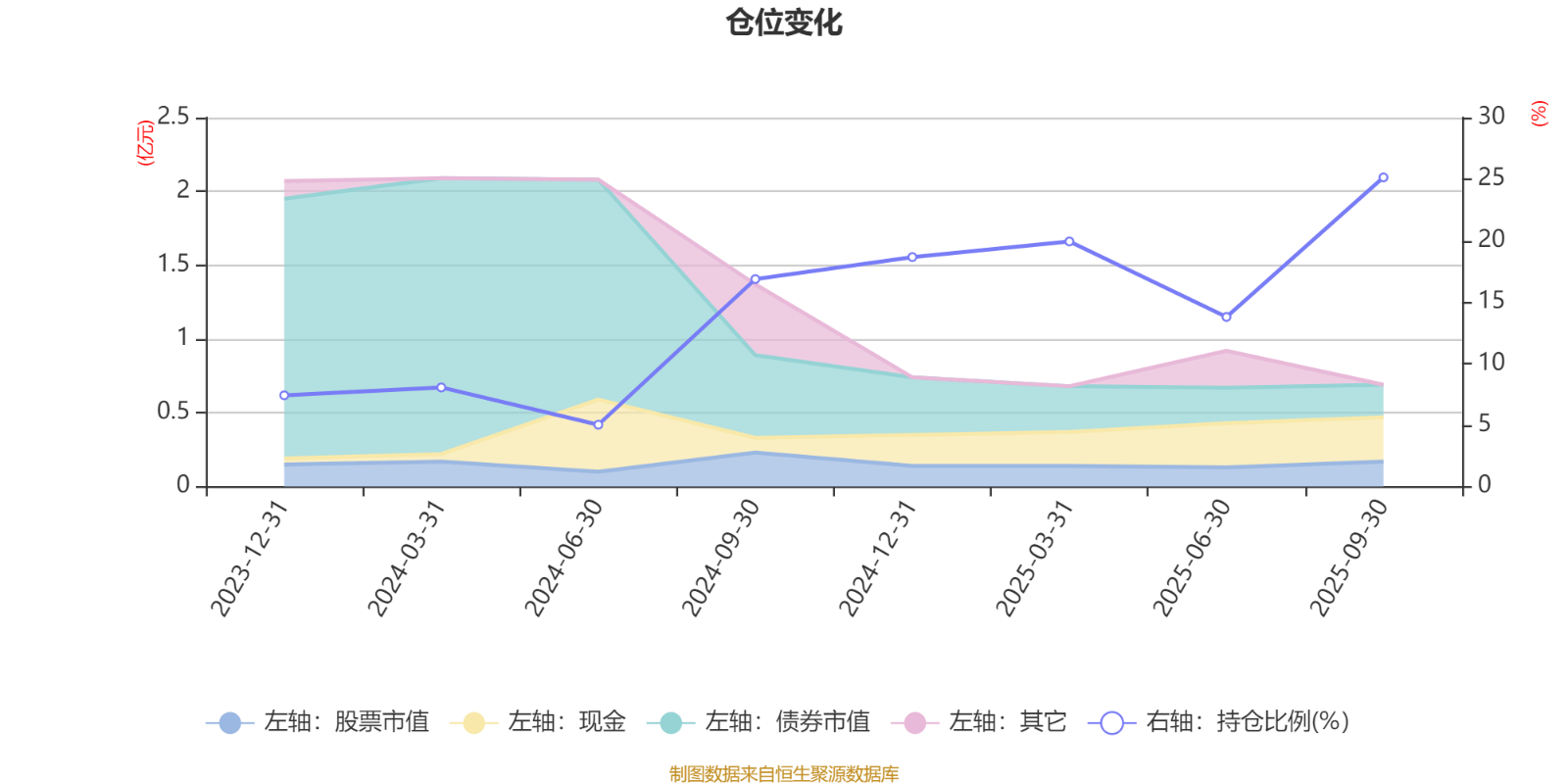 基金管理人在三季报中表示,回顾本基金在 2025 年三季度的投资操作,在权益投资方面,采用自上而下的宏观配置与自下而上的个股精选相结合的策略。在个股筛选过程中,重点聚焦行业景气度处于上升通道、财务报表稳健可靠、估值水平合理适中的优质标的。投资策略以追求绝对收益为核心目标,高度重视股票底仓的结构性配置,力求在控制风险的前提下实现资产的稳健增值。债券投资方面,主要配置短久期国债、高评级信用债等安全性较高的债券品种,并根据市场行情阶段性参与可转债投资,以捕捉市场中的投资机会。
