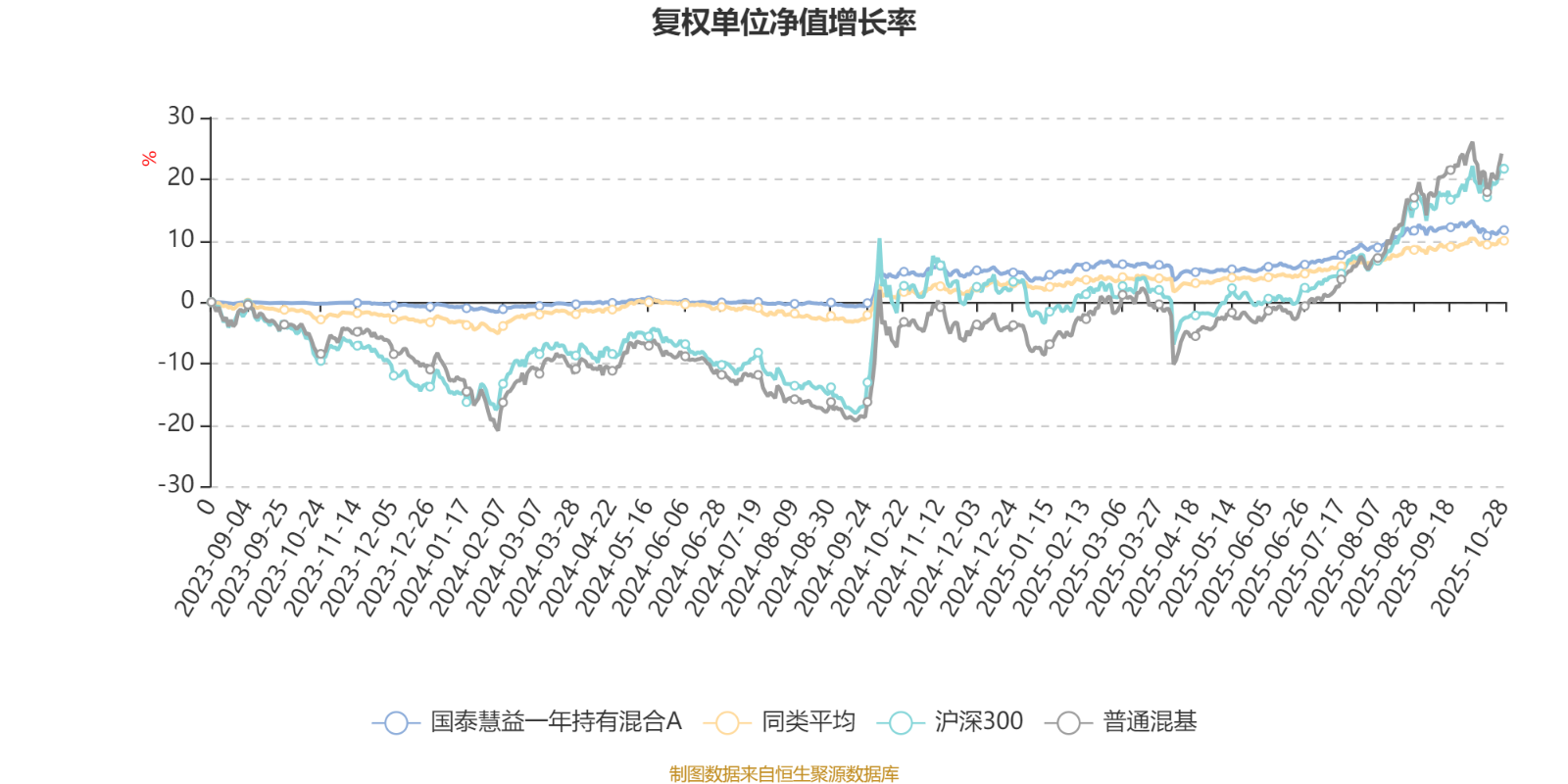 截至10月28日,国泰慧益一年持有混合A近三个月复权单位净值增长率为2.57%,位于同类可比基金297/629;近半年复权单位净值增长率为6.51%,位于同类可比基金244/629;近一年复权单位净值增长率为6.54%,位于同类可比基金343/623。