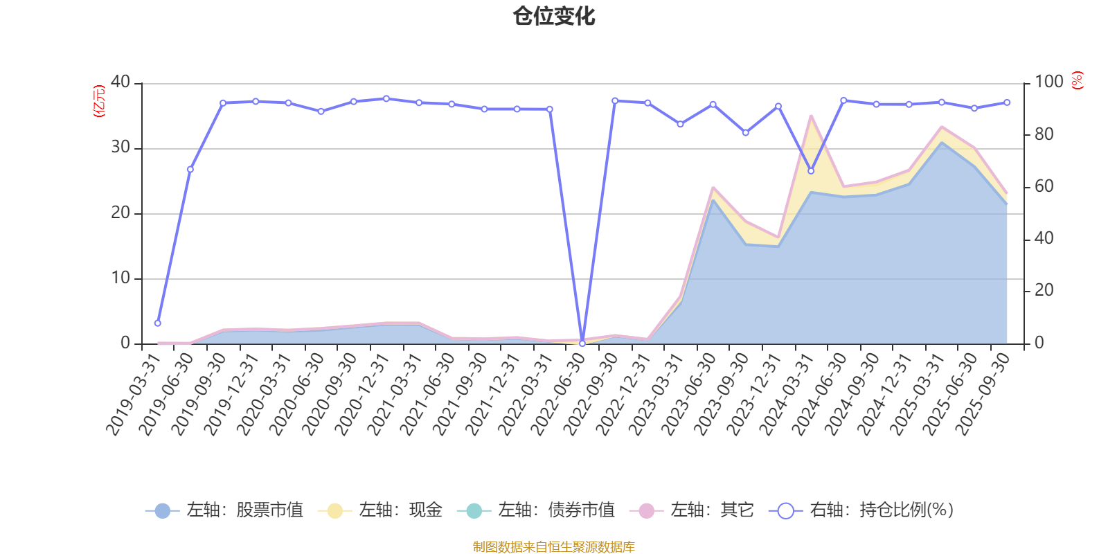 据定期报告数据统计,近三年平均股票仓位为88.31%,同类平均为72.35%。2020年末基金达到94.06%的最高仓位,2022年上半年末最低,为0.12%。