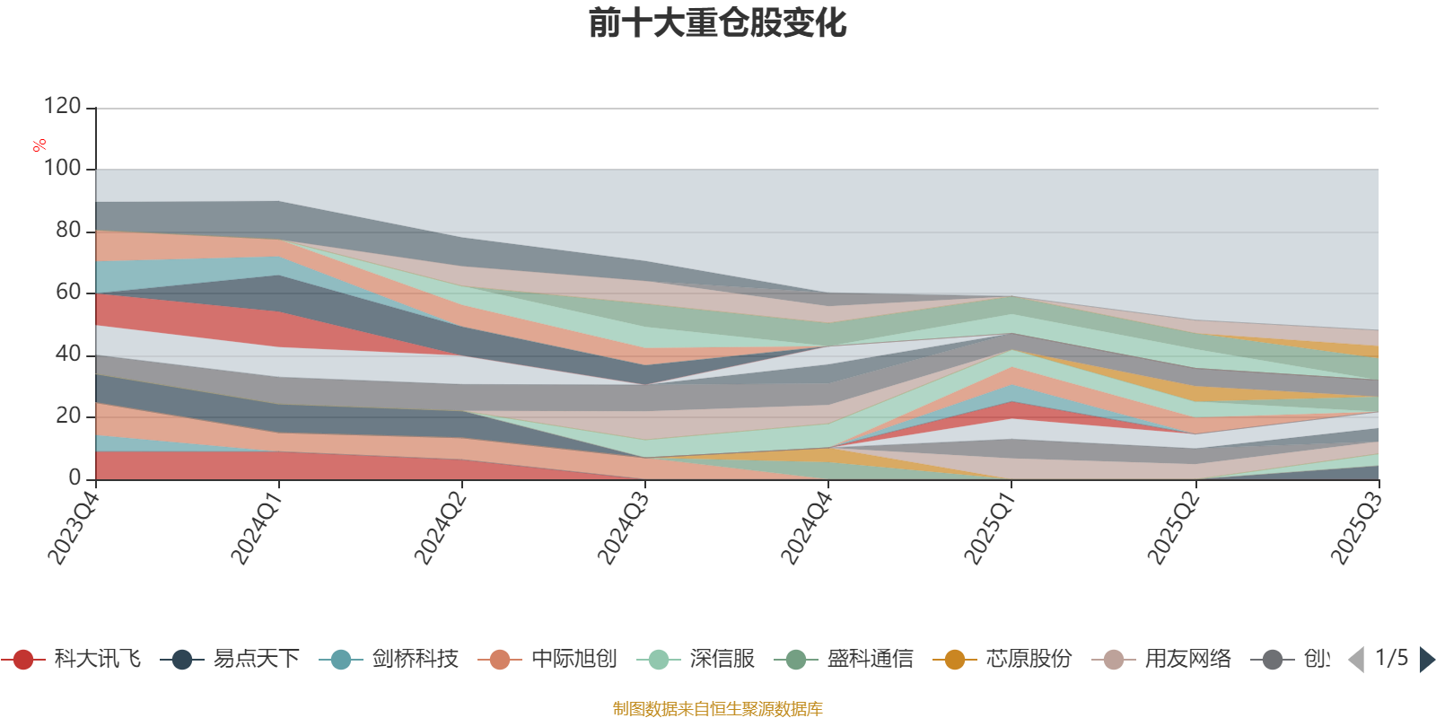 截至2025年三季度末,基金十大重仓股分别是达梦数据、软通动力、金山办公、昆仑万维、润和软件、易点天下、卓易信息、江波龙、用友网络、深信服。