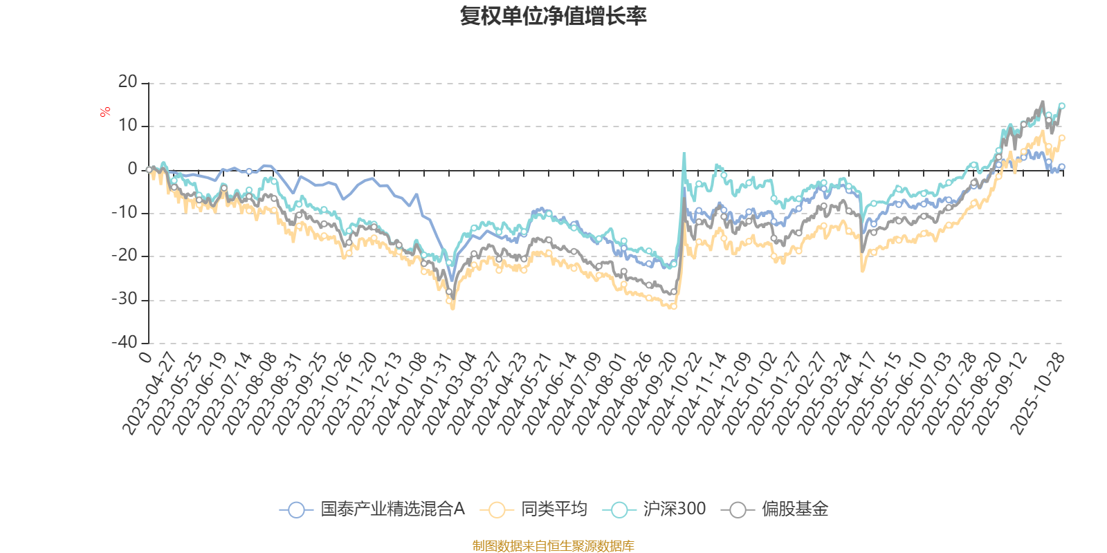 截至10月28日,国泰产业精选混合A近三个月复权单位净值增长率为4.60%,位于同类可比基金527/621;近半年复权单位净值增长率为11.94%,位于同类可比基金555/619;近一年复权单位净值增长率为11.66%,位于同类可比基金519/611。