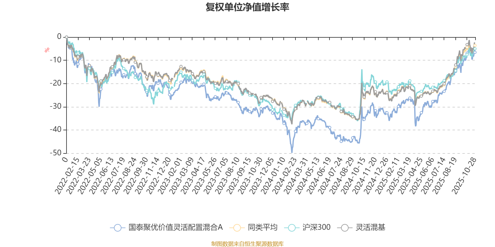 截至10月28日,国泰聚优价值灵活配置混合A近三个月复权单位净值增长率为16.00%,位于同类可比基金476/1287;近半年复权单位净值增长率为39.54%,位于同类可比基金280/1287;近一年复权单位净值增长率为36.06%,位于同类可比基金296/1287;近三年复权单位净值增长率为21.20%,位于同类可比基金537/1286。