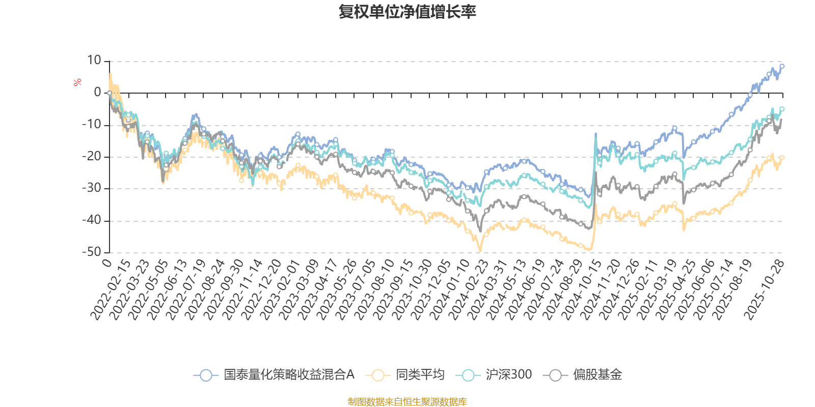 截至10月28日,国泰量化策略收益混合A近三个月复权单位净值增长率为13.28%,位于同类可比基金319/621;近半年复权单位净值增长率为28.57%,位于同类可比基金319/619;近一年复权单位净值增长率为30.40%,位于同类可比基金278/611;近三年复权单位净值增长率为43.69%,位于同类可比基金103/518。
