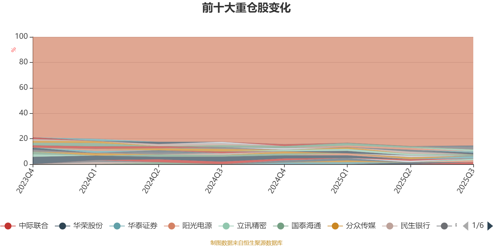 截至2025年三季度末,基金十大重仓股分别是中金黄金、三一重工、中际联合、阳光电源、立讯精密、科沃斯、吉比特、大华股份、德赛西威、山东黄金。