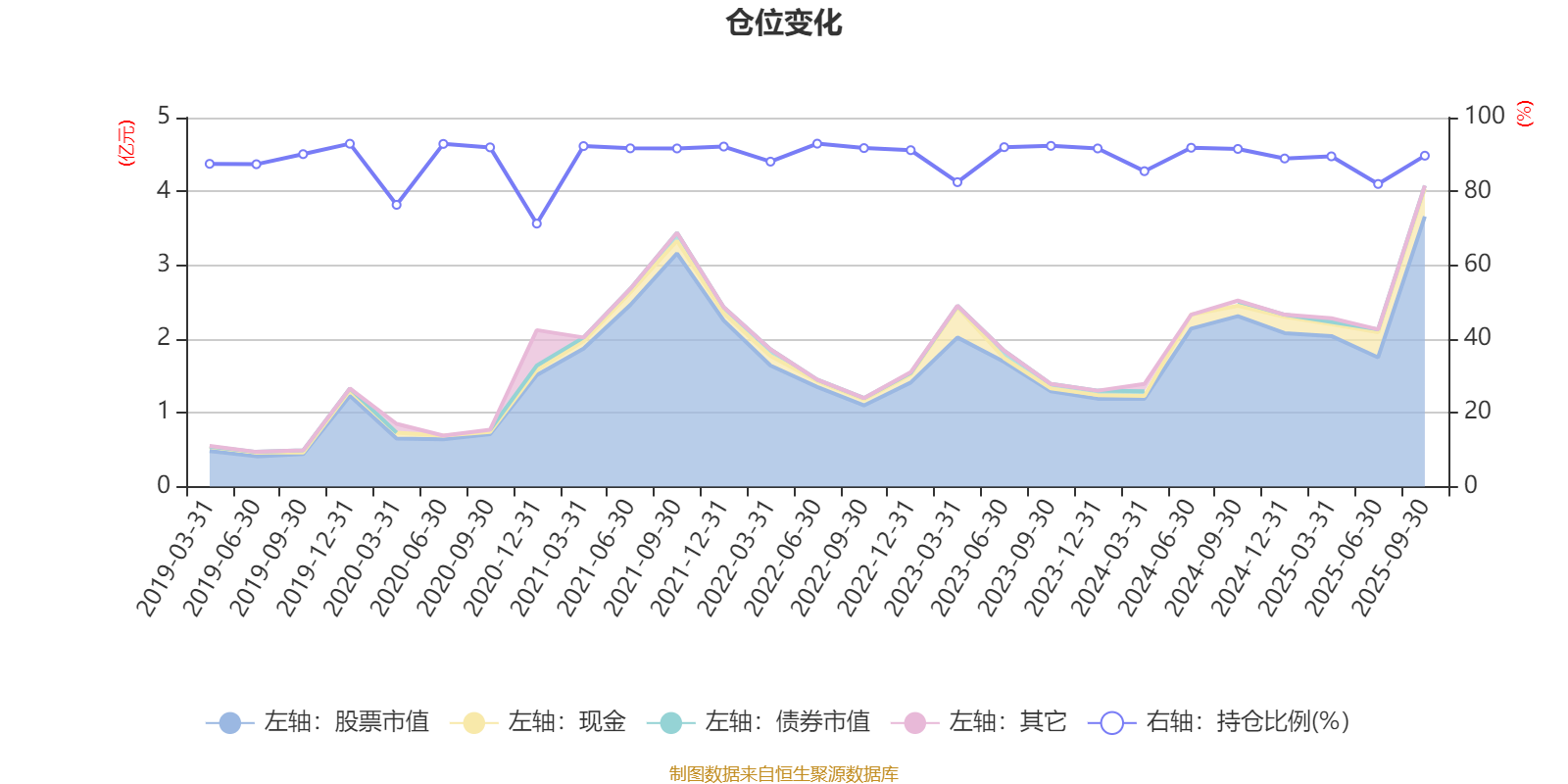 据定期报告数据统计,近三年平均股票仓位为89.05%,同类平均为85.66%。2022年上半年末基金达到92.94%的最高仓位,2020年末最低,为71.27%。