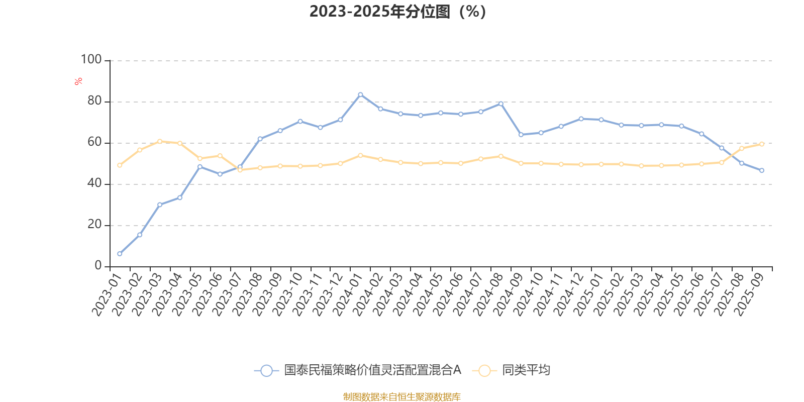通过所选区间该基金净值增长率分位图,可以观察该基金与同类基金业绩比较情况。图为坐标原点到区间内某时点的净值增长率在同类基金中的分位数。