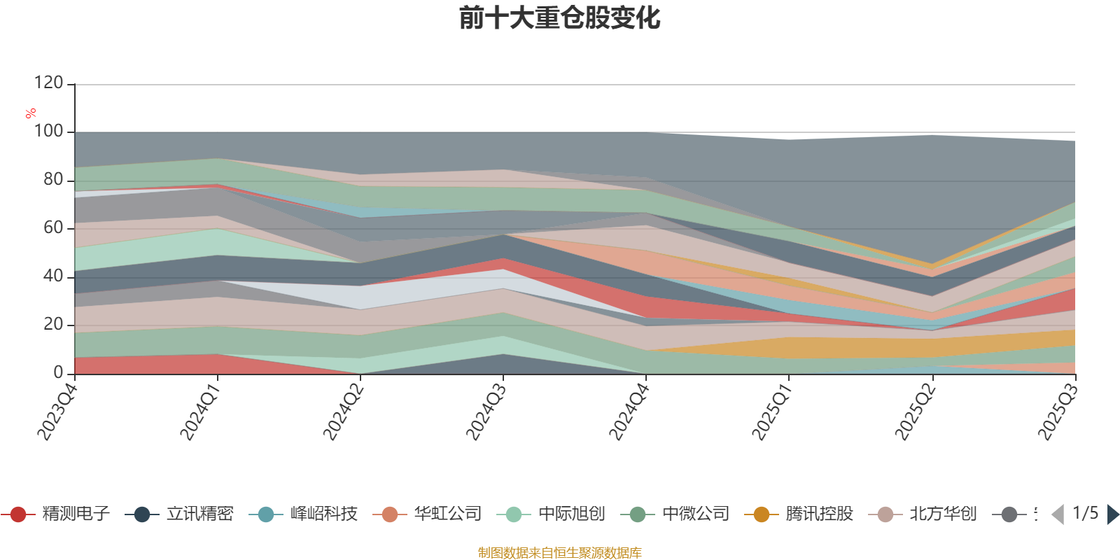 截至2025年三季度末,基金重仓股分别是寒武纪、北方华创、中芯国际、中微公司、拓荆科技、中科飞测、腾讯控股、海光信息、阿里巴巴-W、华虹公司、华虹半导体。