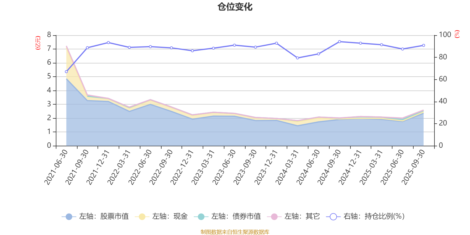 据定期报告数据统计,近三年平均股票仓位为88.91%,同类平均为86.77%。2024年三季度末基金达到94.22%的最高仓位,2021年上半年末最低,为67.08%。