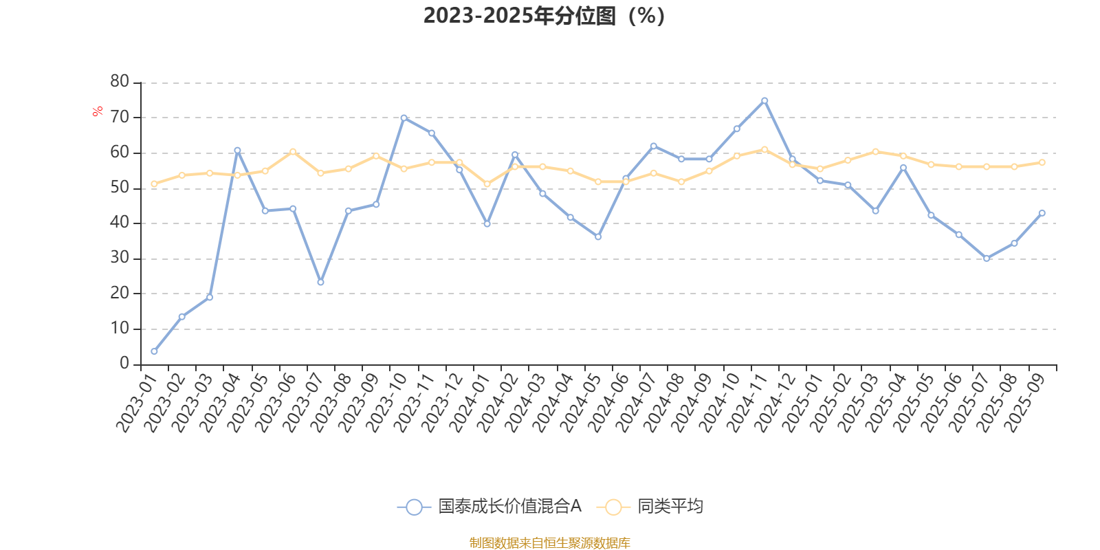 通过所选区间该基金净值增长率分位图,可以观察该基金与同类基金业绩比较情况。图为坐标原点到区间内某时点的净值增长率在同类基金中的分位数。
