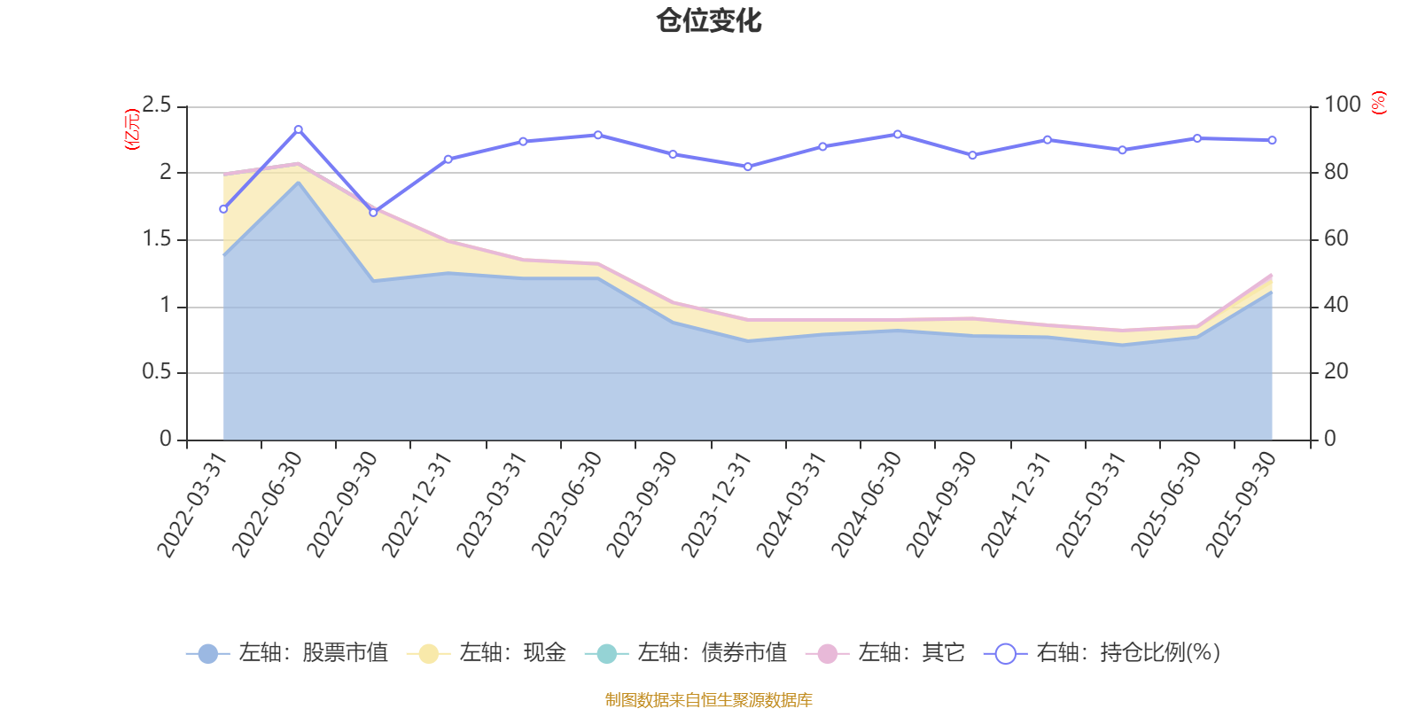 据定期报告数据统计,近三年平均股票仓位为87.9%,同类平均为83.73%。2022年上半年末基金达到93.09%的最高仓位,2022年三季度末最低,为68.16%。