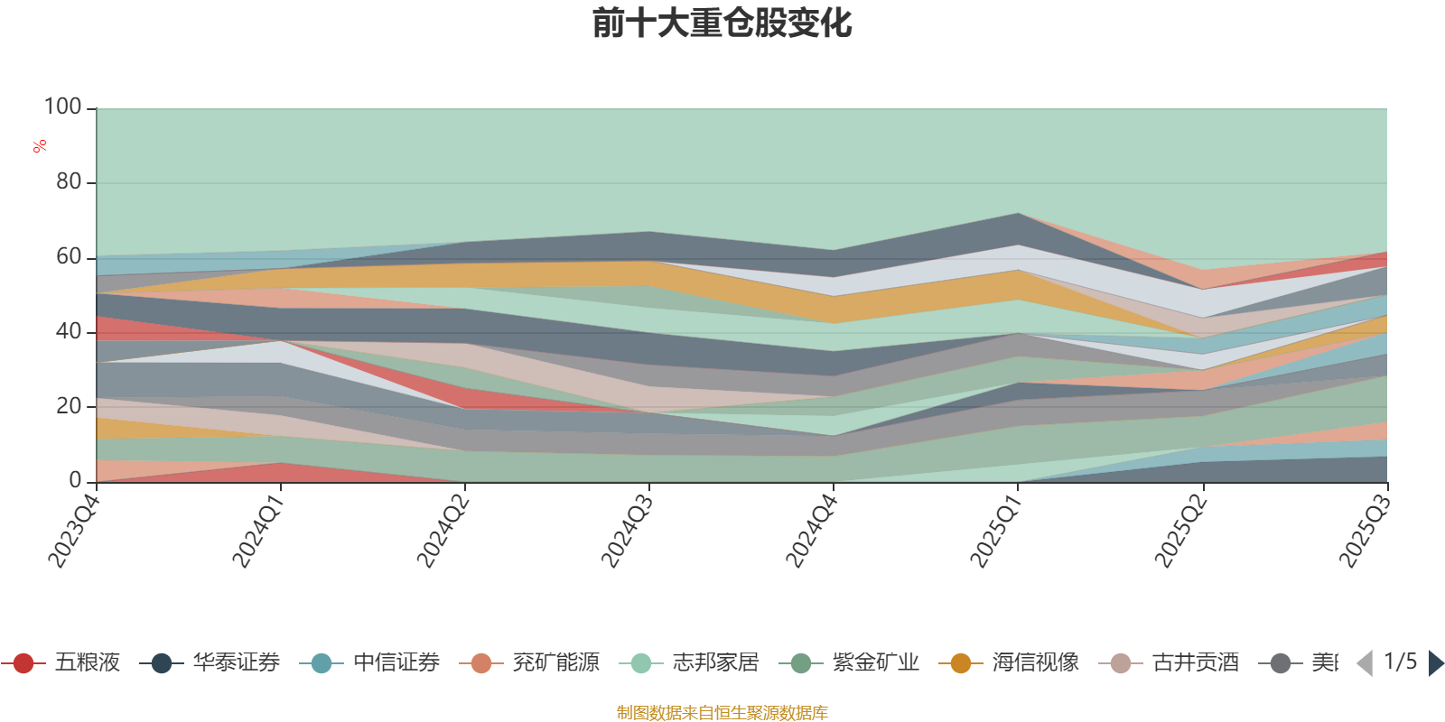 该基金持股集中度较高。截至2025年三季度末,基金十大重仓股分别是紫金矿业、长盈精密、华泰证券、中兴通讯、贵州茅台、江淮汽车、兖矿能源、紫光股份、中信证券、复旦微电。
