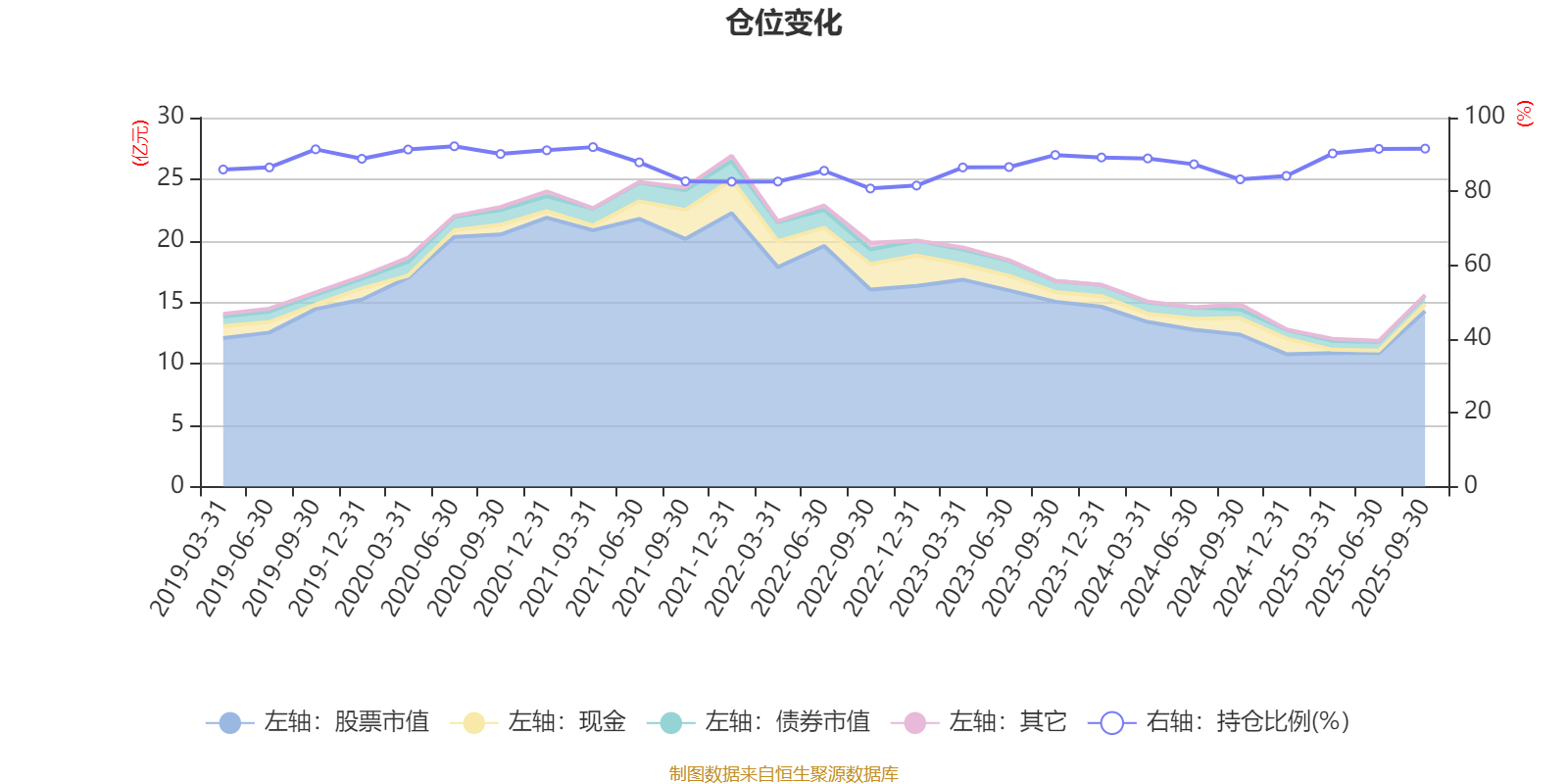 据定期报告数据统计,近三年平均股票仓位为87.58%,同类平均为88.58%。2020年上半年末基金达到92.23%的最高仓位,2022年三季度末最低,为80.78%。