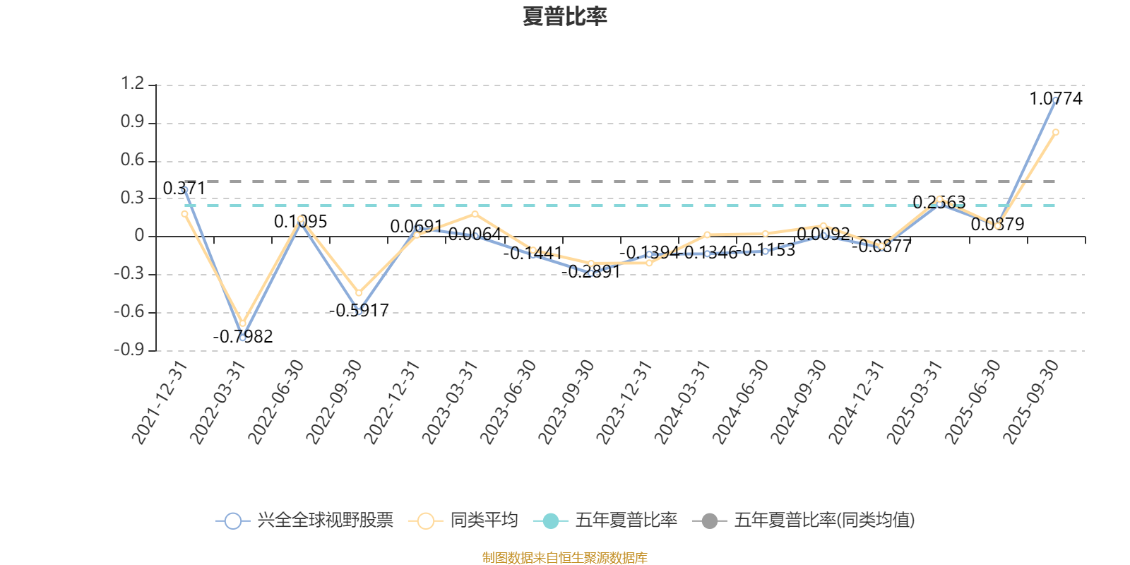 截至9月30日,基金近三年夏普比率为0.5415,位于同类可比基金41/56。
